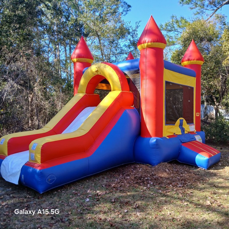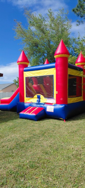 - OCCUPANCY: A maximum of 5-6 kids of equal size at one time for bounce houses, and 1 person at a time for slides is what most inflatable manufacturers recommend.