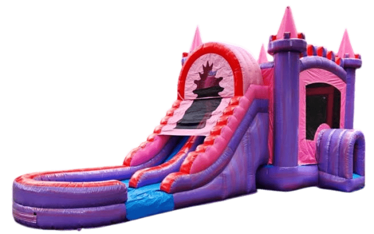 The Princess Fire Combo Bounce House is a colorful glittery pink and purple inflatable featuring a spacious bounce area, castle design, and an exciting slide for nonstop fun. Perfect for princess parties, birthdays, and events, this combo bounce house keeps kids entertained with safe, active play.